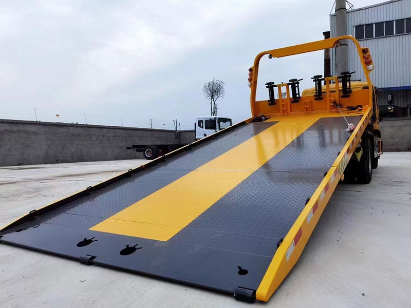 上裝配置:5噸上裝,5噸卷揚,21米鋼絲繩,3.5噸后托臂,底板為5mm厚花紋板,板長6.5米,雙側聯動操作,配四根捆綁帶,**小車一套,L型抱胎架一對,工具箱一個,LED工作照明燈一對,其余標配。